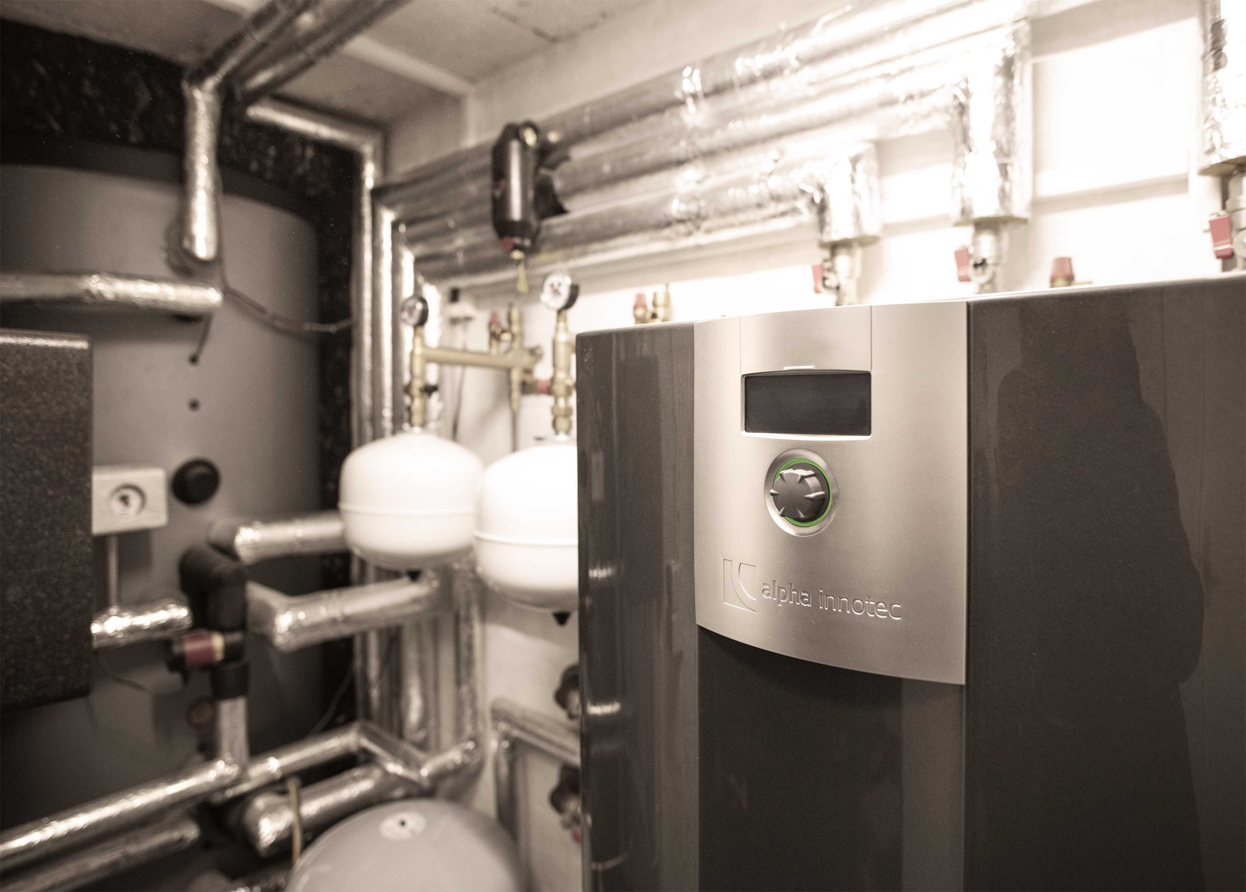 Zusammen mit unserem Partner R&S Bohrgesellschaft, die vor Ort die Tiefenbohrung vornahmen, haben wir auf engstem Raum eine Wärmepumpenanlagen installiert, die alle bestehenden Systeme integriert. Dafür wurde ein 800-l-Multifunktionsspeicher in das Gebäude eingepasst. Die Regelung der Wärmepumpe von alpha innotec übernimmt das Zusammenspiel des Gesamtsystems.